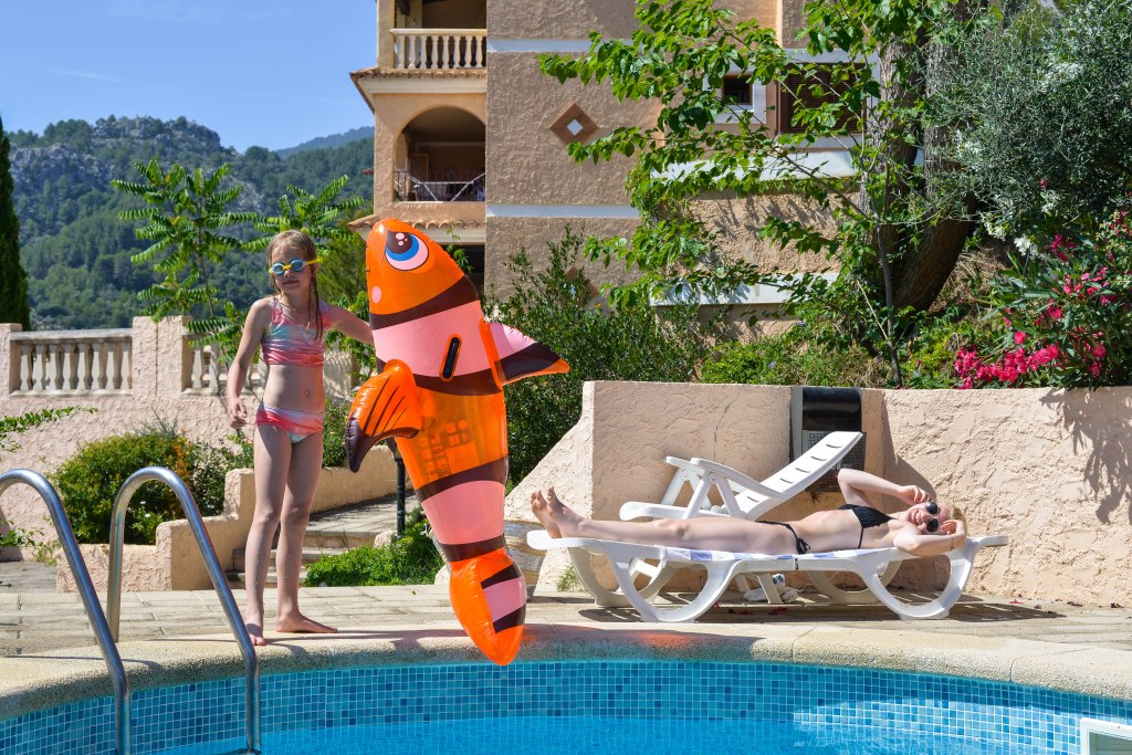 Sååå, när man väl kommit upp till lägenheten är man väldigt väldigt glad att poolen ligger precis just där utanför vår terrass!