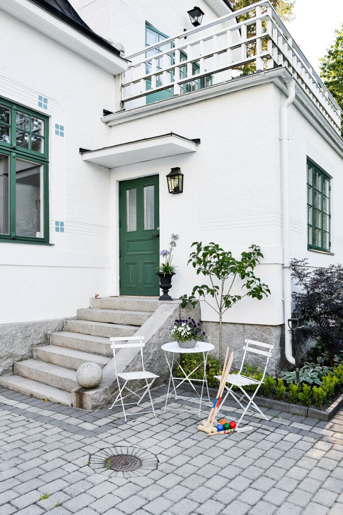Spraymålat utemöblerna vid entrén