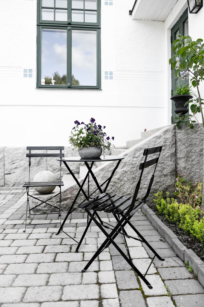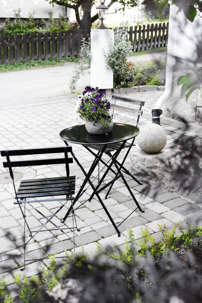När jag var i Skåne och fotade trädgårdsreportage för några år sedan sa paret jag var hos att de tycket att det såg ut som att man hade ett Café hemma om man hade sådana där vita enkla Café möbler i trädgården. Målade man dem svarta blev intrycket mindre Café och mer sober trädgård.