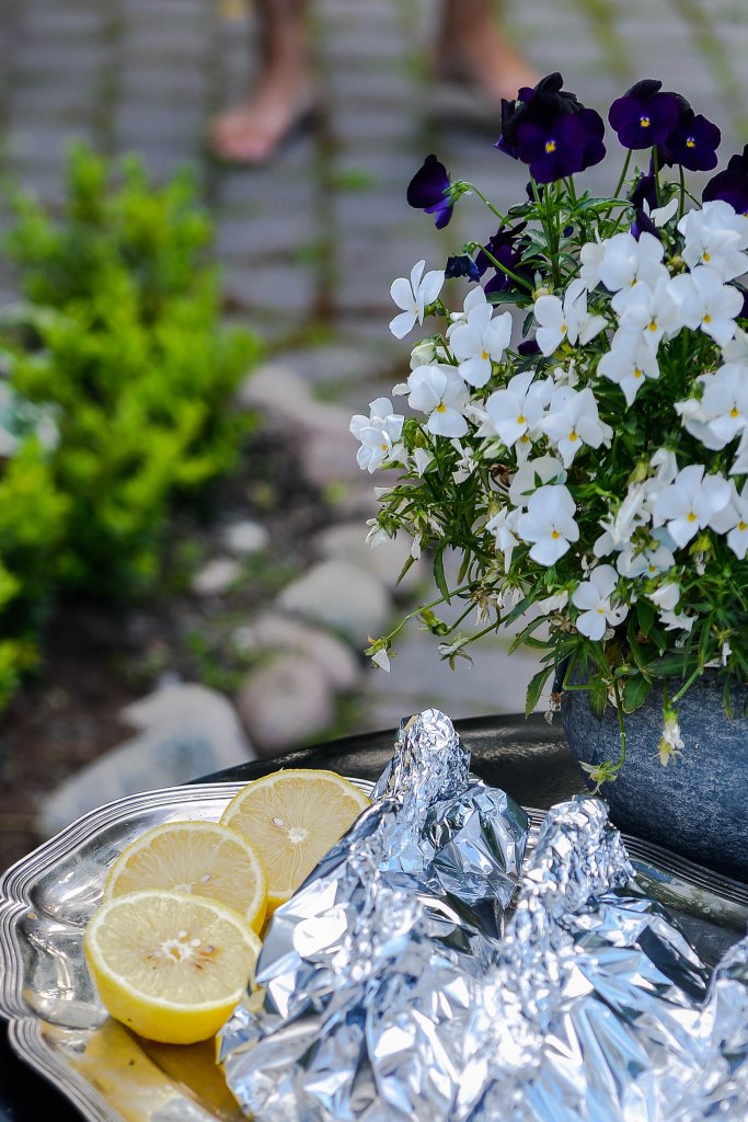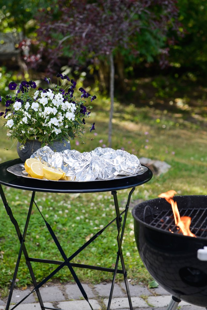 Såhär på sommaren när vädret är fint och grillen åker fram förhållandevis ofta är det härligt att göra fisk i folie. Vi fiskar en del i Lofsdalen och brukar ha öringar till det, men just detta är regnbåge som Lillans kusiner dragit upp på utflykt med mormor (tack för de fina fiskarna Elias och Albin).