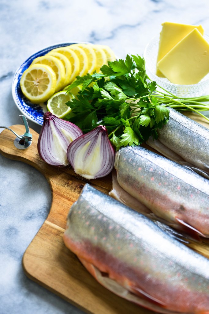 Jag gillar att göra det lätt för mig och fyller oftast fisken med det jag har hemma. Den här gången blev det citron, lime, persilja, rödlök, smör, salt och peppar. Men det går att köra med nästan vilka grönsaker, örter eller kryddor som helst!