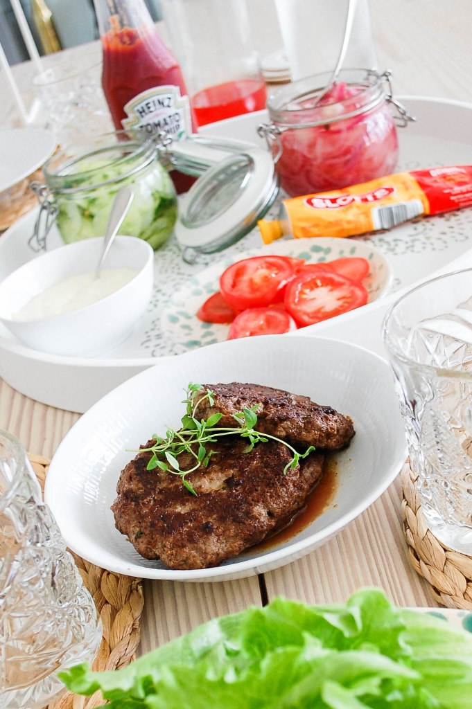 Vad ska man hitta på att äta? Sitter här och klarar på vad jag ska bjuda våra gäster på i em. Kanske blir det något grillat. bäst passa på medan sommaren är. Här om dagen gjorde jag högrevsburgare som var tänkta att grillas. Vädergudarna var inte helt med oss så det fick bli vanlig hederlig stekning istället. Gott det med.