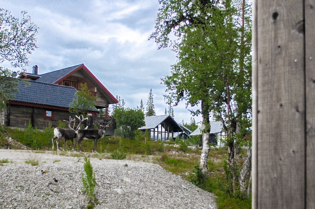 Små söta renar knatade förbi vår stuga idag och tittade nyfiket på mig som satt på bron och solade