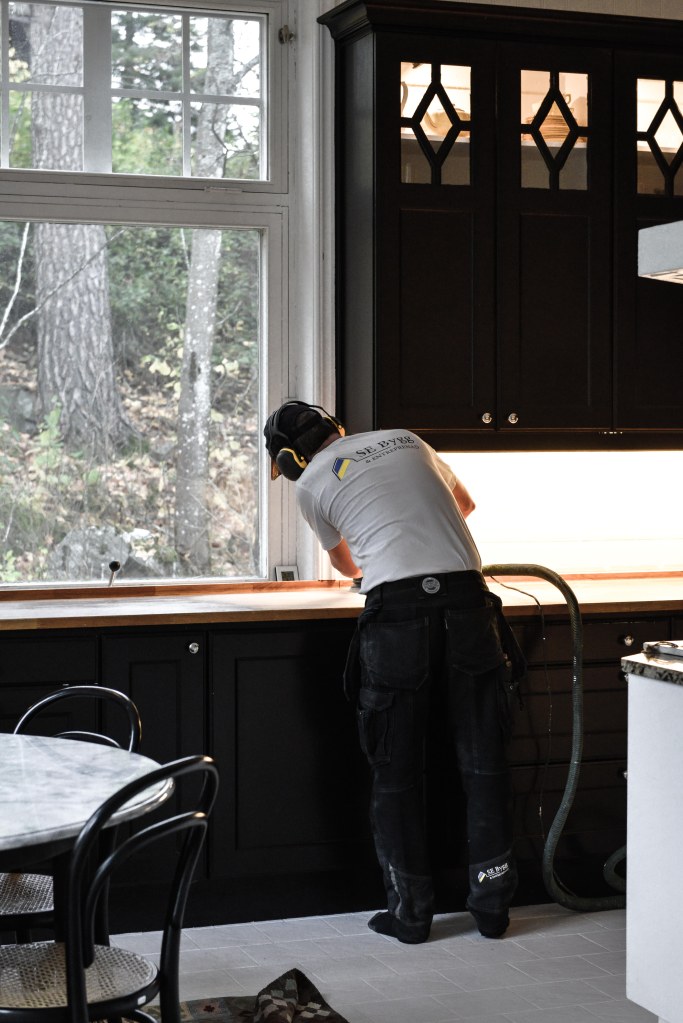 Tänkte att det var lika bra att agera momentant, så att inte bänkskivan i köket blir ett halvt påbörjat projekt som blir stående vecka ut och vecka in. Killarna från SE-Bygg var här redan 1 timma efter att jag hade ringt och meddelat mitt nederlag. Skönt, nu blir det ordentligt gjort!