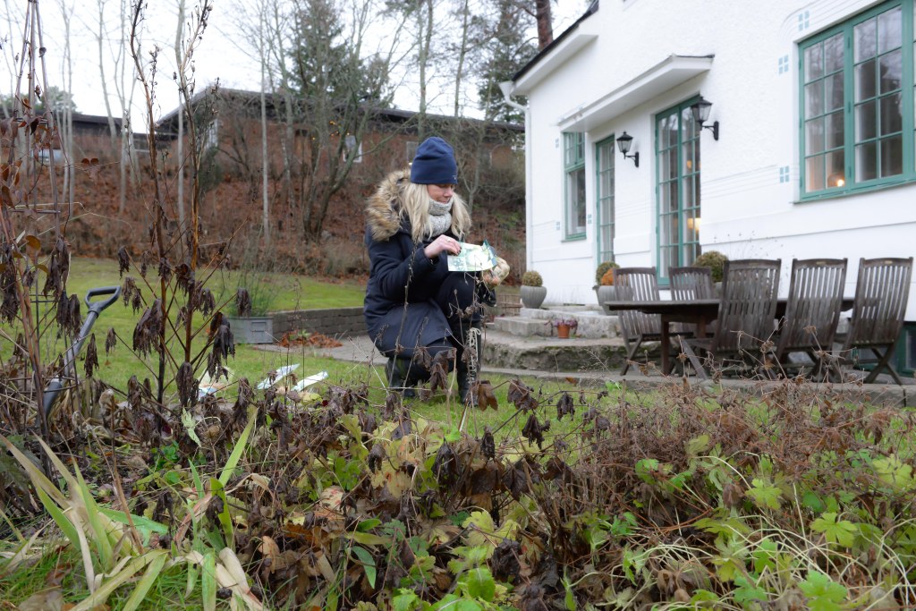 Som ni ser har jag inte höststädat rabatterna. Men jag skyller på att typ alla jag intervjuat och skrivit texter om till trädgårdsreportage säger att de låter alla fröställningar och nedvissnade växter stå kvar över vintern. Dels så finns fåglar och andra djur (möss då eller?) som vill äta fröna och dels skyddar det nedvissnade bladen rötterna mot kylan. Så, ja här står allt visset kvar till nästa vår. Bara hoppas att det blir vitt snart så vi slipper se det.
