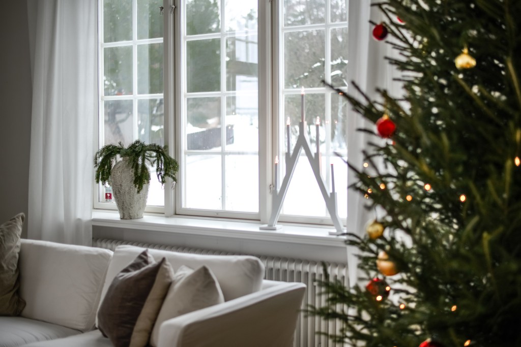 Jag gillar verkligen de två nya i vardagsrummet. De är höga och spetsiga och passar himla bra i våra höga fönster. Just fönstret på bilden är det lägsta i huset, det fanns inte där när huset byggdes (sååå irriterad på mig själv at vi inte valde att ta upp det fönstret i samma höjd som de andra när vi ändå bytte fönstren och gjorde om fasaden… men, men…). Hur som haver är ljusstaken fin med sina 77 cm i höjd och ganska smala ”siluett”. Alla som kommer hem till oss säger samma sak ”man fattar inte hur stort och högt det är i tak här inne om man bara tittar på bilderna i bloggen”. Julgranen i år är 310 cm hög, så ni kan ju bara tänka er en människa som jag på typ 170 cm bredvid 🙂