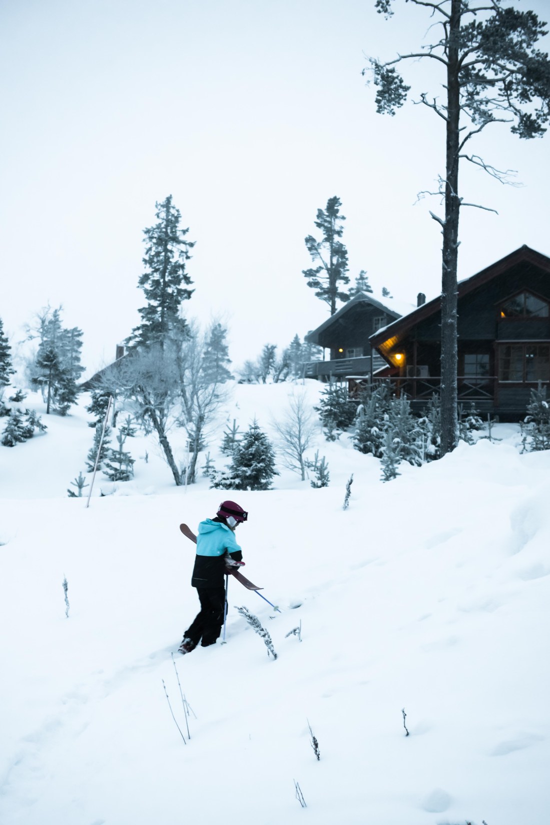 Det är verkligen vinter här i Lofsdalen just nu. Vi har runt 7-8 minusgrader och snön faller ymnigt. Tyvärr blåser det en hel del så jag skulle gissa att de tappra skidåkarna som lämnade stugan i gryningen snart dyker upp här igen sådär lite lagom frusna och hungriga.