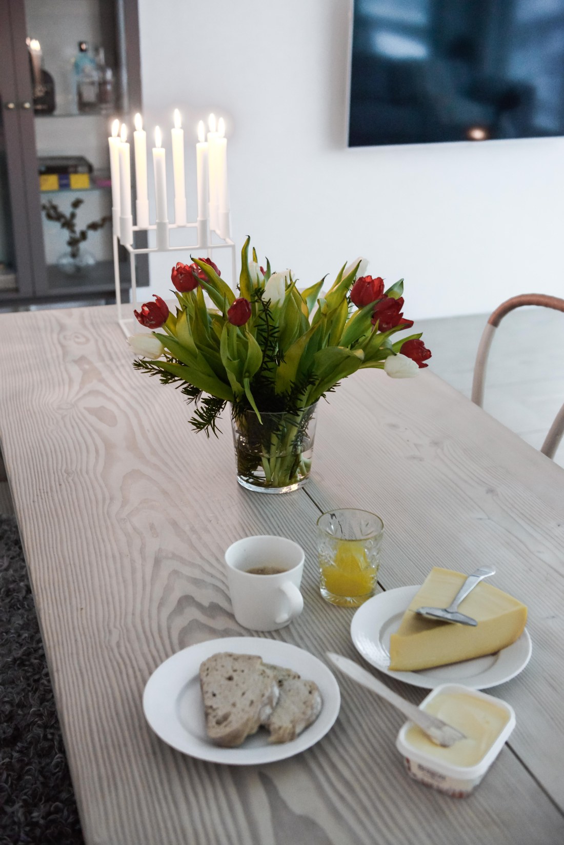 Jag fick ett mail med en fråga om vårt köksbord här i huset. Det är snickaren som byggt huset som byggt bordet också, efter våra ritningar. När vi beställde golvet från Dinesen passade vi på att samtidigt beställa några möbelplank. Det är samma bredd och tjocklek på dem (400 x 35 mm) som på golvet, men möbelplanken är inte spontade så som golvplanken är, utan de är helt raka överallt. Vi är otroligt förtjusta i bordet och den tillhörande bänken. Verkligen en riktigt bra idé att bygga sitt eget bord och bänk. Passar så bra ihop med golvet och hela huset tycker vi. Lite känsligt är det dock så man får vara lite försiktig med rött vin, flott och annat som lätt gör märken i träet. Vi behandlar bordet precis som golvet dvs med vitsåpa kanske 1 gång vid varje tillfälle vi är här. Annars torkar jag bara av det med vatten till vardags. Träet är inledningsvis bestruket med lut så det kommer aldrig att bli gult och fult som trä annars lätt blir. Materialet är gran, eller Douglasgran för att vara mer exakt, så det är lite hårdare än furu, men förstås mycket mjukare än ek.