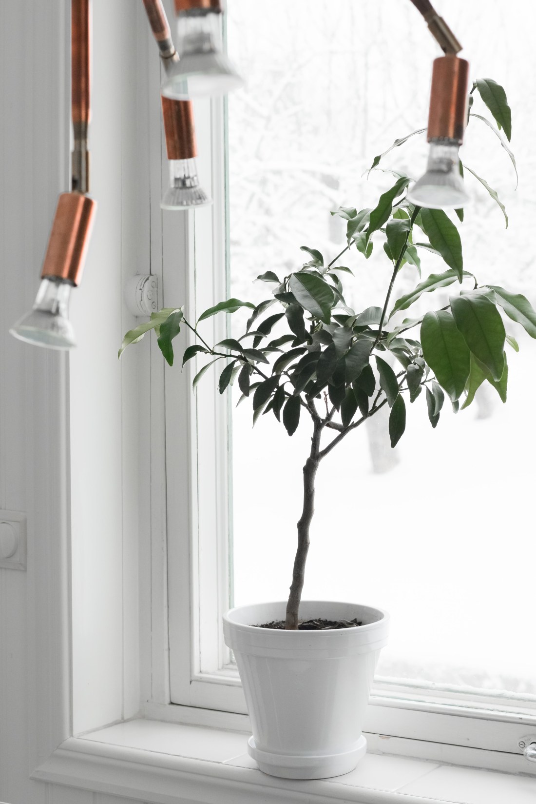 Ett underbart vitt täcke har lagt sig över vår trädgård och ett efterlängtat ljus studsar mot huset och dess fönster. Det är en mörk årstid så visst gör snön stor skillnad! Jag tycker att årstidens mörka uppenbarelse blev än mer påtaglig när adventsljusstakar och stjärnor plockades ned från fönstren, och i år som tidigare år, känner jag ett stort behov av att fylla fönstren med annat ljus.
