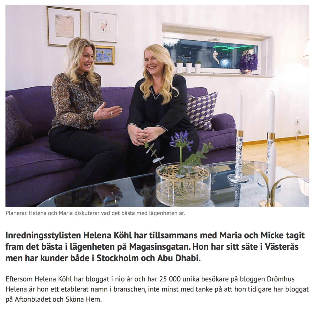Trots att jag numer visar upp mig i tid och otid här på bloggen blir jag allt lite fnissig när jag ser mig själv i tryckt media 🙂 Västerås tidning intervjuade mig och säljaren till en superfin våning som jag stylade veckan innan jul.