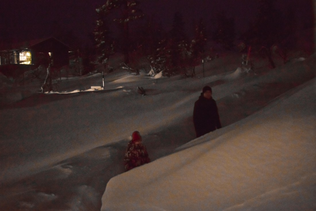 Här hade vi en liten tjej som fyllde 10 år och som vi hade tänkt fira med önskemiddag och uträknad efterrätt. Av det blev det inget eftersom vi helt enkelt inte kom iväg ner till affären. 10 åringens föräldrar gjorde alltså ett försök att köra ned, men fick vända efter några 100 m (jag lovar Sara, jag ska snart sluta säga – Vad var det jag sa!). Bilarna som kört fast i snön på väg upp på fjället radade upp sig en efter en och någon plogbil syntes inte till. Det var bara att anpassa sig och sitta still i båten tills vägarna var plogade och allt återgått till det normala. Det gjorde det dagen efter.