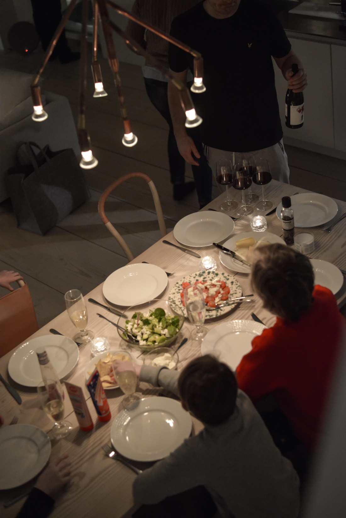 Så vad gör man då insnöad i en stuga på fjället med en 10 åring som förväntar sig ett kalas? Jo, man får improvisera. Här blev det buffé av rester och det som fanns i kylskåpet, och sedan blev det en enkel kladdkaka.
