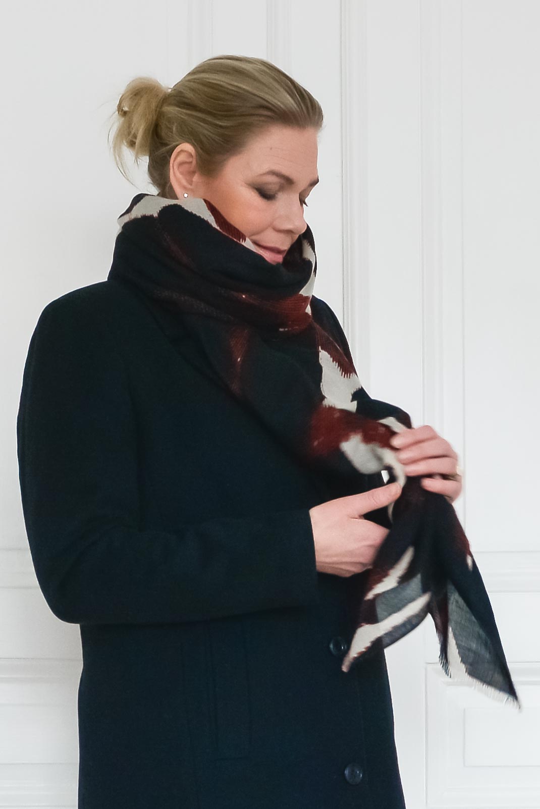 En ny sjal har flyttat in i min garderob och jag är supernöjd. Den är stor mjuk och väldigt varm och gosig eftersom den är i 100% ull (men mjuk sådan och inte stickig). Jag har flera ullsjalar men de jag har har luddat av sig något förfärligt på kappan så jag har på riktigt hållit på att bli tokig! Den här är så fint vävd så det blir inget som helst ludd av den. Fyndade den i en butik här i stan på 70% rea, men har sett att den även finns på rea HÄR hos Boozt. Den kommer från By Malene Birger för den som undrar.