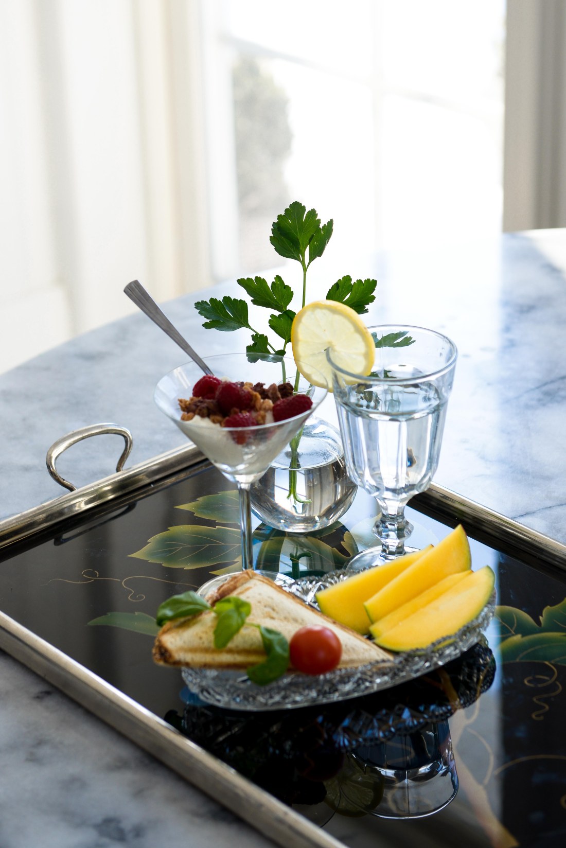 Igår morse när hon vaknade, gjorde jag ”överraskningsfrukost” till henne, precis som jag brukade göra när hon fortfarande gick på förskolan och vi inte lämnade henne förrän vid 10.00 snåret på dagarna. Hon är en riktig finsmakare den lilla damen och uppskattar verkligen en fin uppläggning och lite ”extra piff”. En toast med Milanoskinka och ost, turkisk yoghurt med bär och müsli och några skivor mango blev det den här gången, men det kan vara typ precis vad som helst. Ibland när kylskåpet gapar tomt får man trolla med knäna. En gång fick hon en knäckis med smör, några popcorn i ett snapsglas, ett halvt äpple i bitar och var så nöjd med det. Hon pratade om de där popcornen länge efter det.