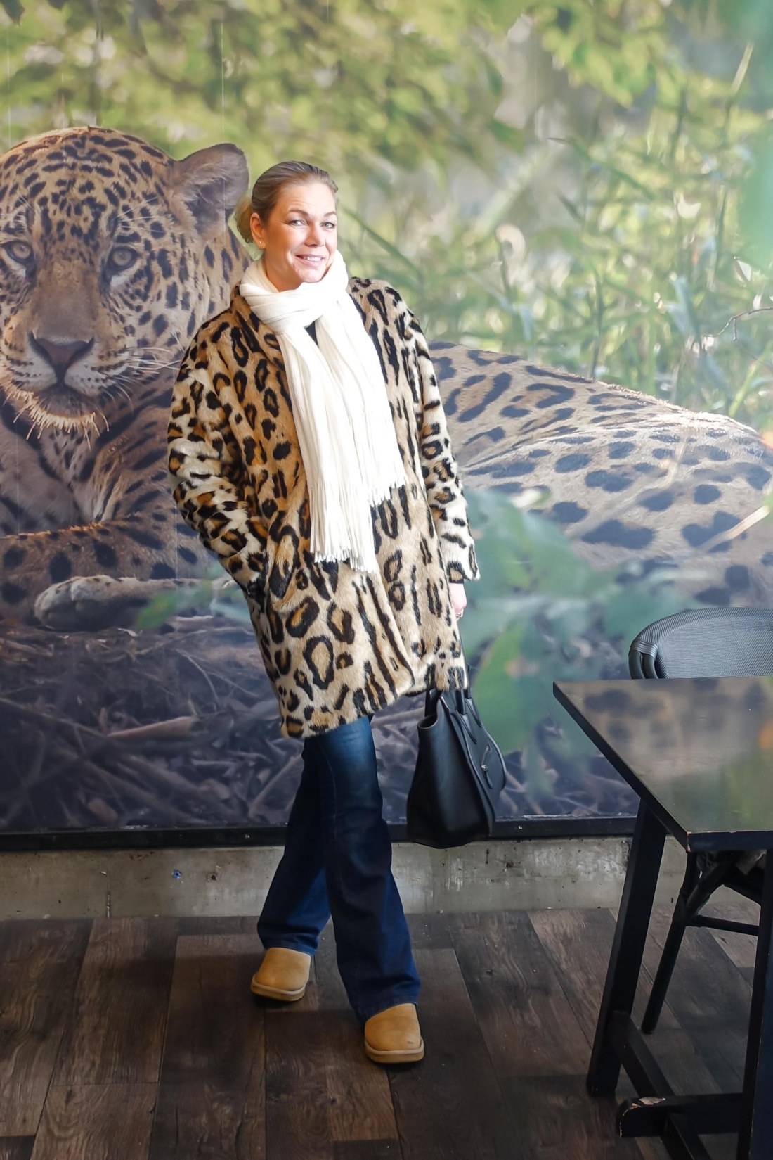 Älskar min ”leo från Lindex” som passar till allt, vardag som fest! Finns en liknade superfin här hos Bubbleroom. Utsvängda jeans tillhör min ”vardagsuniform” har ett par blå och ett par mörkgrå, liknade blå finns här (också Bubbleroom) och svarta här hos Gina Tricot. På fötterna har jag Uggs i den här modellen (Ellos), finns inget skönare! Handväskan är min trotjänare och ögonsten från Céline.