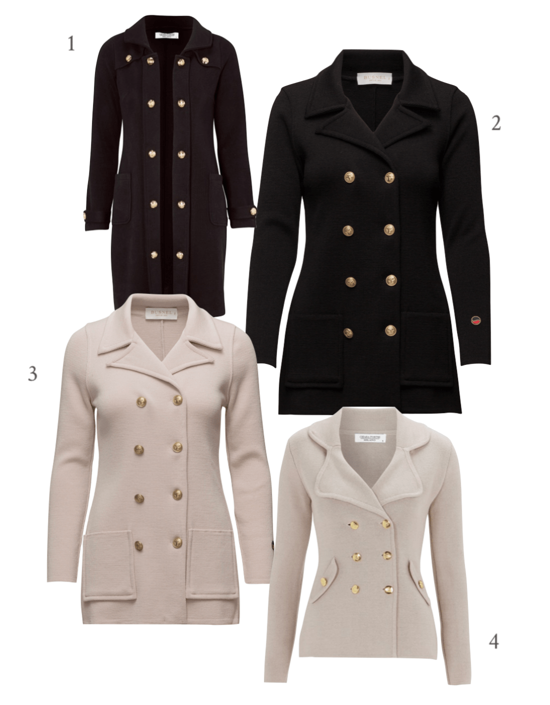 1. Sottovalle jersey coat Bubbleroom här /2.Busnel boost här / 3. Busnel Victoria Jacket Boozt här / 4. Chiara Forti Bubbleroom här.
