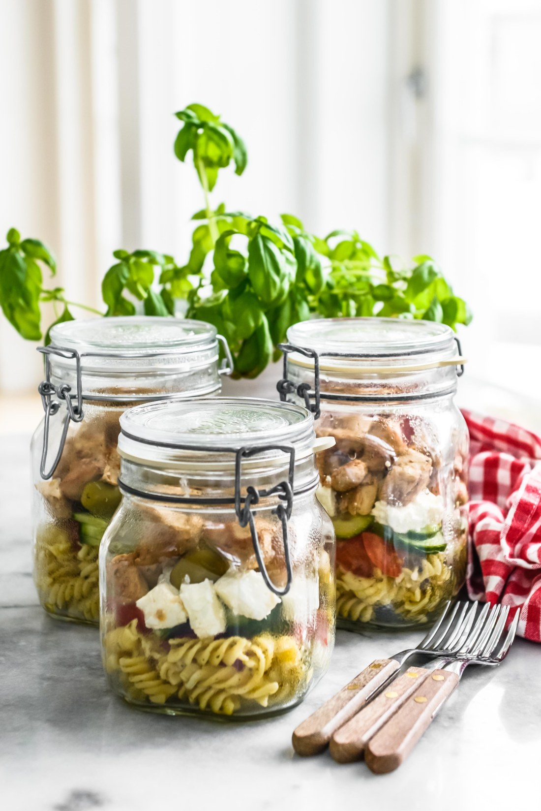 Tips! Servera pastasalladen i glasburkar istället för i plastburkar på utflykten. Ser mycket trevligare ut och smakar faktiskt också bättre. Vi hade med oss varsin kycklingsallad på handbollscupen igår.