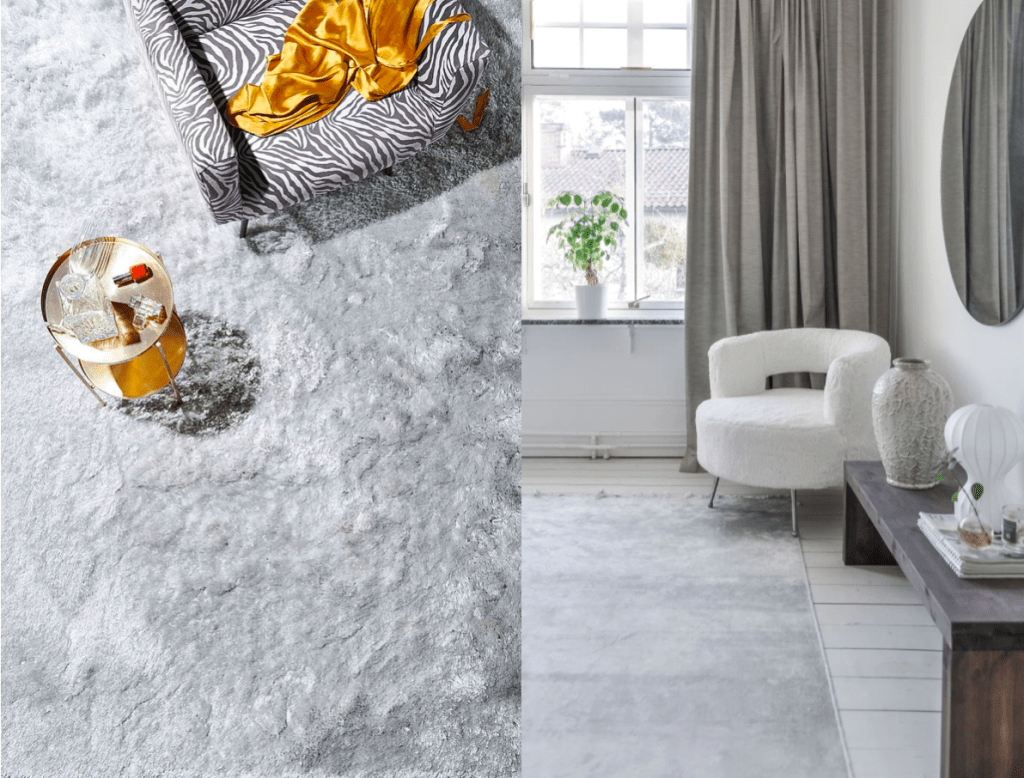 Sedan har vi mattan på bilden (inte den i mitt sovrum). En fluffig och härlig historia som jag köpt till en kund vars sons rum jag håller på och inreder. Den finns i olika färger och vi har köpt den ljusgrå varianten på bilden. I verkligheten är den, på grund av att den är blank, ljusare än på bilden tycker jag. Nästan vit faktiskt. Mattor kan vara hemskt dyra, men denna köpte vi i stl 2 x 3 m för bara 2999 kr här, också det ett riktigt fynd som jag kan rekommendera.