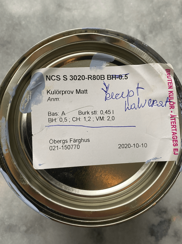 Ett tips från mig när det gäller att välja färg till väggar. Det blir alltid mycket mörkare än vad man tänkt sig. Det är i alla fall min erfarenhet. Därför valde jag att halvera receptet till den här färgen. Dvs de tog hälften så mycket färg mot vad som rekommenderas för att få fram den önskade färgen. Är ni med? På Öbergs här i Västerås är de superduktiga med färg och kan hjälpa dig på traven med det.