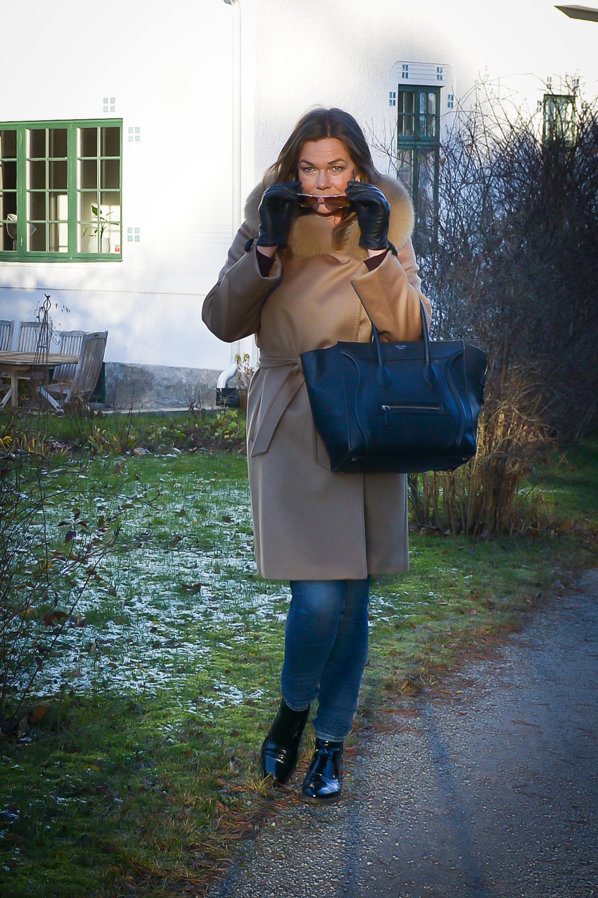 Den absolut heeelt underbara drömkappan från Max Mara finns här och så hittade jag faktiskt en sida med vintage väskor där min älskade Medium Luggage Tote från Celine finns – kolla här . Jeansen finns här 🙂