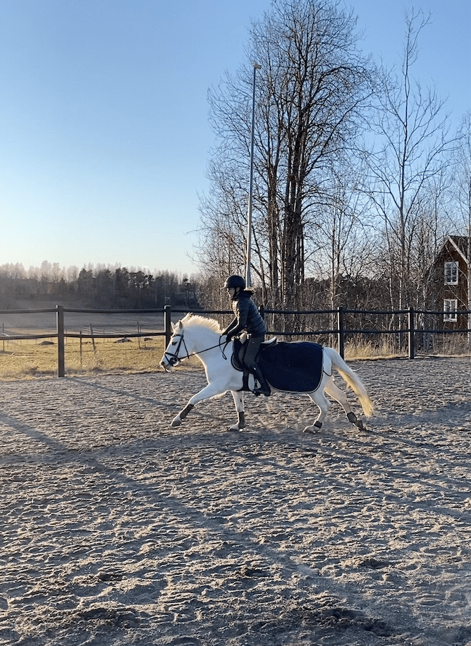 Ja men så himla vårigt och härligt det varit hela veckan. Hela 11 grader varmt och blå himmel och sol. Love it! Det är liksom en helt annan spot att hålla på med hästar när det är varmt och skönt och man kan rida ute. Nu längtar vi bara efter att kunna ta av Shanaia de tjocka täckena och raka av den tjocka vinterpälsen som hon odlat därunder.